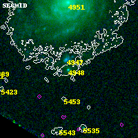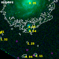 Object #4948 x,y = (595, 1778) RA, Dec = (01:37:32.808, -8:28:04.80) = (24.38670, -8.46800) BPZ = 0.541 [0.284--0.663] type = 7.50 (SB1_B10 - Scd_B10) chisq2 = 0.00 ODDS = 0.65 z_cluster = 0.566