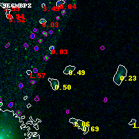 Object #4964 x,y = (4335, 2163) RA, Dec = (01:37:17.688, -8:27:41.76) = (24.32370, -8.46160) BPZ = 0.491 [0.188--3.587] type = 9.30 (SB2_B10 - SB3_B10) chisq2 = 0.00 ODDS = 0.09 z_cluster = 0.566