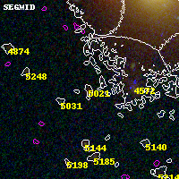 Object #5021 x,y = (2072, 1945) RA, Dec = (01:37:26.856, -8:27:55.08) = (24.36190, -8.46530) BPZ = 0.689 [0.099--3.447] type = 9.80 (SB3_B10 - SB2_B10) chisq2 = 0.18 ODDS = 0.17 z_cluster = 0.566