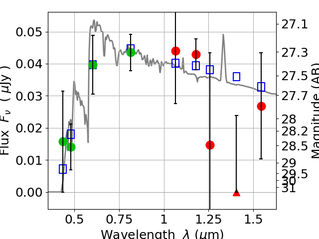 Best viewed in a wide browser window (1200 pixels or more). Download SED & P(z) plots to view larger versions.