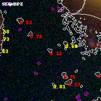 Object #5031 x,y = (2041, 1931) RA, Dec = (01:37:26.976, -8:27:55.80) = (24.36240, -8.46550) BPZ = 0.115 [0.083--0.317] type = 11.00 (SB11_A_0_l) chisq2 = 1.58 ODDS = 0.58 z_cluster = 0.566