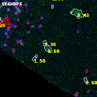 Object #5070 x,y = (293, 1901) RA, Dec = (01:37:34.032, -8:27:57.60) = (24.39180, -8.46600) BPZ = 0.602 [0.244--2.273] type = 10.60 (SB11_A_0_l - SB3_B10) chisq2 = 0.00 ODDS = 0.13 z_cluster = 0.566
