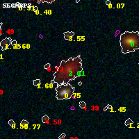 Object #5117 x,y = (3315, 1877) RA, Dec = (01:37:21.816, -8:27:59.04) = (24.34090, -8.46640) BPZ = 2.006 [1.947--2.063] type = 5.40 (ES0_B10 - Sbc_B10) chisq2 = 0.07 ODDS = 1.00 z_cluster = 0.566