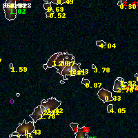 Object #5131 x,y = (3547, 1868) RA, Dec = (01:37:20.880, -8:27:59.40) = (24.33700, -8.46650) BPZ = 1.806 [1.236--1.919] type = 8.60 (SB2_B10 - SB1_B10) chisq2 = 0.17 ODDS = 0.82 z_cluster = 0.566