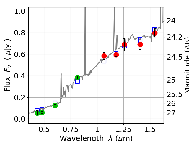 Best viewed in a wide browser window (1200 pixels or more). Download SED & P(z) plots to view larger versions.