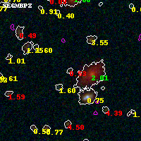 Object #5163 x,y = (3284, 1883) RA, Dec = (01:37:21.936, -8:27:58.68) = (24.34140, -8.46630) BPZ = 0.526 [0.294--4.582] type = 9.20 (SB2_B10 - SB3_B10) chisq2 = 1.06 ODDS = 0.11 z_cluster = 0.566