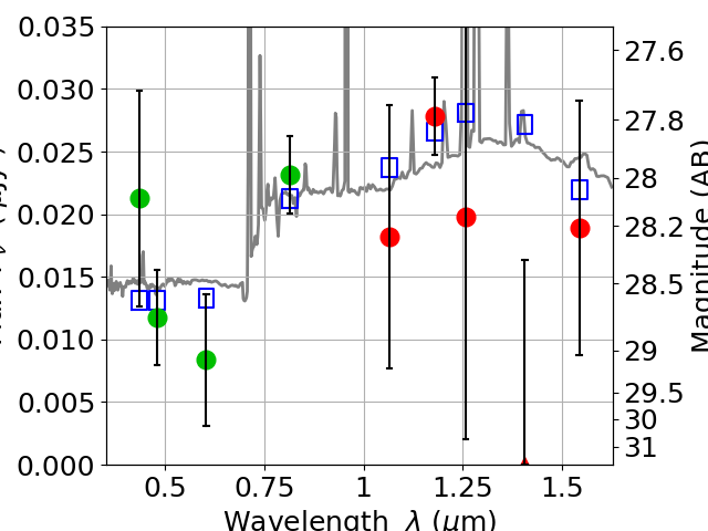 Best viewed in a wide browser window (1200 pixels or more). Download SED & P(z) plots to view larger versions.