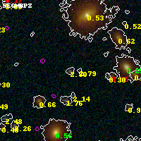 Object #5182 x,y = (2345, 1871) RA, Dec = (01:37:25.752, -8:27:59.40) = (24.35730, -8.46650) BPZ = 2.800 [2.645--3.111] type = 9.80 (SB3_B10 - SB2_B10) chisq2 = 0.23 ODDS = 0.75 z_cluster = 0.566