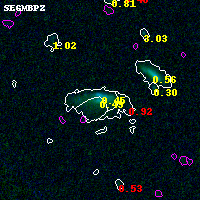 Object #5186 x,y = (813, 1901) RA, Dec = (01:37:31.944, -8:27:57.60) = (24.38310, -8.46600) BPZ = 0.495 [0.461--0.614] type = 8.40 (SB1_B10 - SB2_B10) chisq2 = 0.85 ODDS = 0.80 z_cluster = 0.566