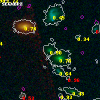 Object #5221 x,y = (3773, 1840) RA, Dec = (01:37:19.968, -8:28:01.20) = (24.33320, -8.46700) BPZ = 0.904 [0.733--1.350] type = 6.00 (Sbc_B10) chisq2 = 0.00 ODDS = 0.43 z_cluster = 0.566