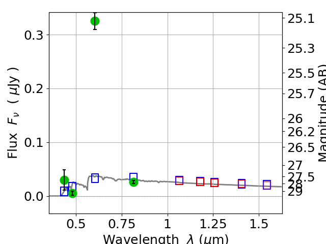 Best viewed in a wide browser window (1200 pixels or more). Download SED & P(z) plots to view larger versions.