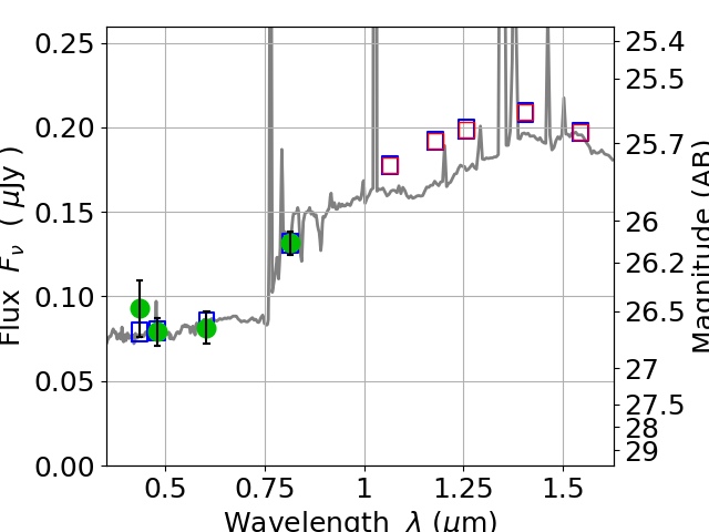 Best viewed in a wide browser window (1200 pixels or more). Download SED & P(z) plots to view larger versions.