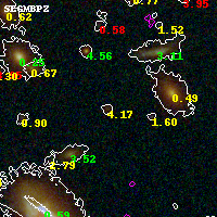 Object #5279 x,y = (2506, 1828) RA, Dec = (01:37:25.080, -8:28:01.92) = (24.35450, -8.46720) BPZ = 4.174 [0.271--4.513] type = 8.00 (SB1_B10) chisq2 = 0.33 ODDS = 0.42 z_cluster = 0.566