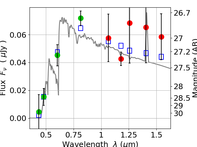 Best viewed in a wide browser window (1200 pixels or more). Download SED & P(z) plots to view larger versions.