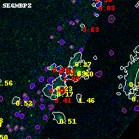 Object #5331 x,y = (4109, 1787) RA, Dec = (01:37:18.600, -8:28:04.44) = (24.32750, -8.46790) BPZ = 0.694 [0.245--3.565] type = 7.00 (Scd_B10) chisq2 = 0.42 ODDS = 0.17 z_cluster = 0.566