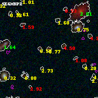 Object #5338 x,y = (3251, 1800) RA, Dec = (01:37:22.080, -8:28:03.72) = (24.34200, -8.46770) BPZ = 0.774 [0.473--4.293] type = 7.80 (SB1_B10 - Scd_B10) chisq2 = 0.91 ODDS = 0.49 z_cluster = 0.566