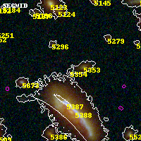 Object #5354 x,y = (2453, 1781) RA, Dec = (01:37:25.296, -8:28:04.80) = (24.35540, -8.46800) BPZ = 2.788 [1.178--3.076] type = 11.00 (SB11_A_0_l) chisq2 = 0.66 ODDS = 0.23 z_cluster = 0.566