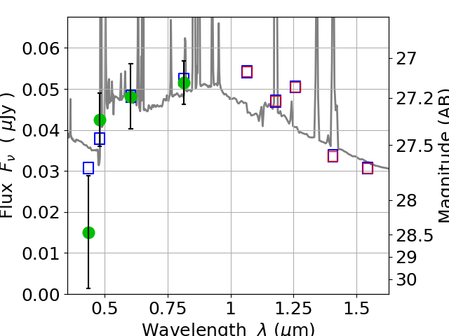 Best viewed in a wide browser window (1200 pixels or more). Download SED & P(z) plots to view larger versions.