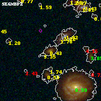 Object #5357 x,y = (3483, 1782) RA, Dec = (01:37:21.144, -8:28:04.80) = (24.33810, -8.46800) BPZ = 0.431 [0.347--0.484] type = 4.00 (Ell4_A_0) chisq2 = 0.15 ODDS = 0.89 z_cluster = 0.566