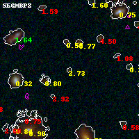 Object #5400 x,y = (3236, 1761) RA, Dec = (01:37:22.128, -8:28:05.88) = (24.34220, -8.46830) BPZ = 2.729 [0.287--3.264] type = 8.80 (SB2_B10 - SB1_B10) chisq2 = 0.43 ODDS = 0.24 z_cluster = 0.566