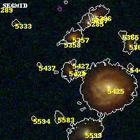 Object #5428 x,y = (3478, 1734) RA, Dec = (01:37:21.168, -8:28:07.68) = (24.33820, -8.46880) BPZ = 0.588 [0.451--0.753] type = 7.20 (Scd_B10 - SB1_B10) chisq2 = 0.59 ODDS = 0.65 z_cluster = 0.566