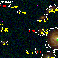 Object #5437 x,y = (3435, 1742) RA, Dec = (01:37:21.336, -8:28:06.96) = (24.33890, -8.46860) BPZ = 2.434 [0.136--2.961] type = 11.00 (SB11_A_0_l) chisq2 = 2.14 ODDS = 0.33 z_cluster = 0.566