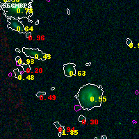 Object #5441 x,y = (3868, 1734) RA, Dec = (01:37:19.584, -8:28:07.68) = (24.33160, -8.46880) BPZ = 0.629 [0.506--1.091] type = 6.20 (Sbc_B10 - Scd_B10) chisq2 = 0.01 ODDS = 0.55 z_cluster = 0.566