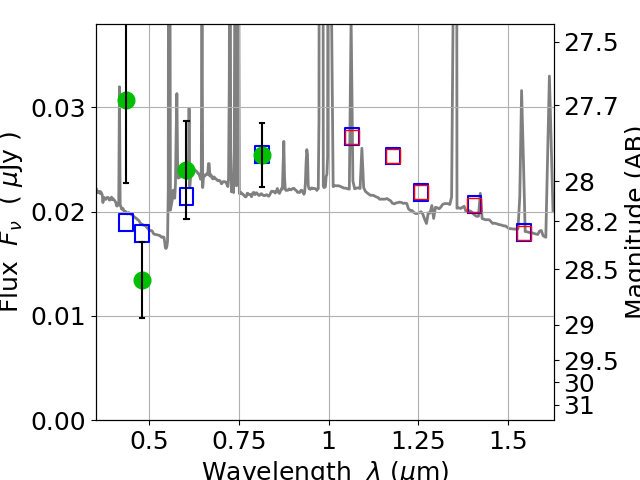 Best viewed in a wide browser window (1200 pixels or more). Download SED & P(z) plots to view larger versions.