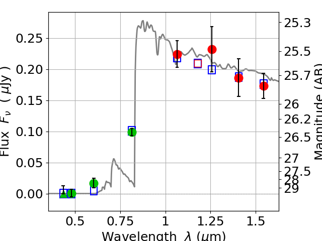 Best viewed in a wide browser window (1200 pixels or more). Download SED & P(z) plots to view larger versions.
