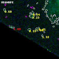 Object #5548 x,y = (454, 1770) RA, Dec = (01:37:33.384, -8:28:05.52) = (24.38910, -8.46820) BPZ = 0.331 [0.179--3.519] type = 7.70 (SB1_B10 - Scd_B10) chisq2 = 0.11 ODDS = 0.27 z_cluster = 0.566