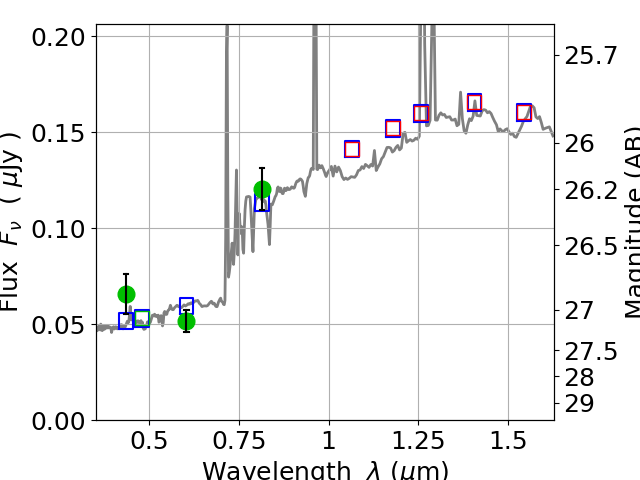 Best viewed in a wide browser window (1200 pixels or more). Download SED & P(z) plots to view larger versions.