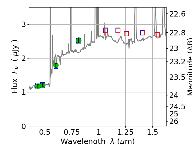 Best viewed in a wide browser window (1200 pixels or more). Download SED & P(z) plots to view larger versions.