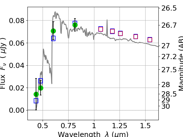 Best viewed in a wide browser window (1200 pixels or more). Download SED & P(z) plots to view larger versions.