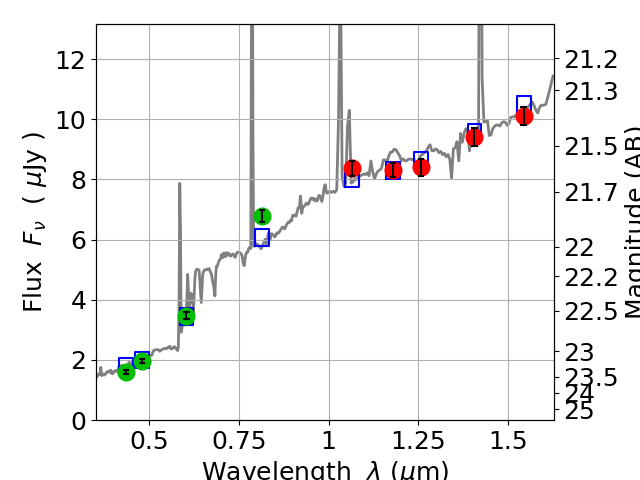 Best viewed in a wide browser window (1200 pixels or more). Download SED & P(z) plots to view larger versions.
