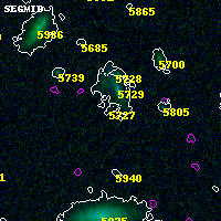 Object #5727 x,y = (1393, 1552) RA, Dec = (01:37:29.592, -8:28:18.48) = (24.37330, -8.47180) BPZ = 1.000 [0.229--2.845] type = 8.80 (SB2_B10 - SB1_B10) chisq2 = 0.77 ODDS = 0.15 z_cluster = 0.566