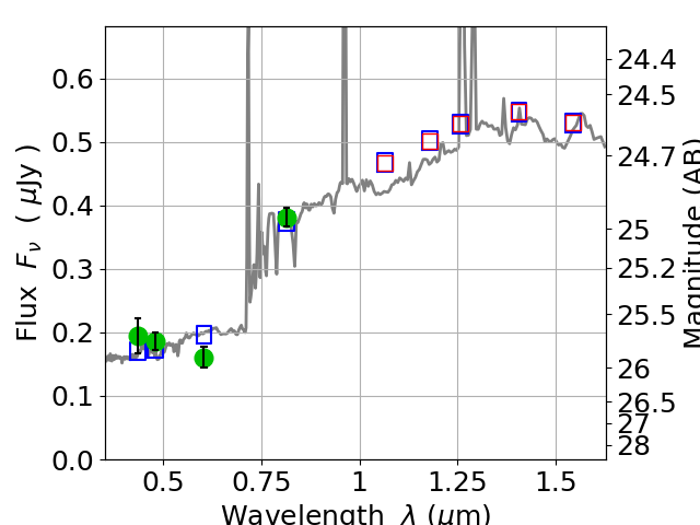 Best viewed in a wide browser window (1200 pixels or more). Download SED & P(z) plots to view larger versions.