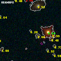 Object #5794 x,y = (3477, 1564) RA, Dec = (01:37:21.168, -8:28:17.76) = (24.33820, -8.47160) BPZ = 0.205 [0.112--3.914] type = 10.10 (SB3_B10 - SB11_A_0_l) chisq2 = 0.86 ODDS = 0.18 z_cluster = 0.566