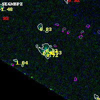 Object #5796 x,y = (892, 1553) RA, Dec = (01:37:31.632, -8:28:18.48) = (24.38180, -8.47180) BPZ = 0.531 [0.132--2.067] type = 8.80 (SB2_B10 - SB1_B10) chisq2 = 0.01 ODDS = 0.30 z_cluster = 0.566