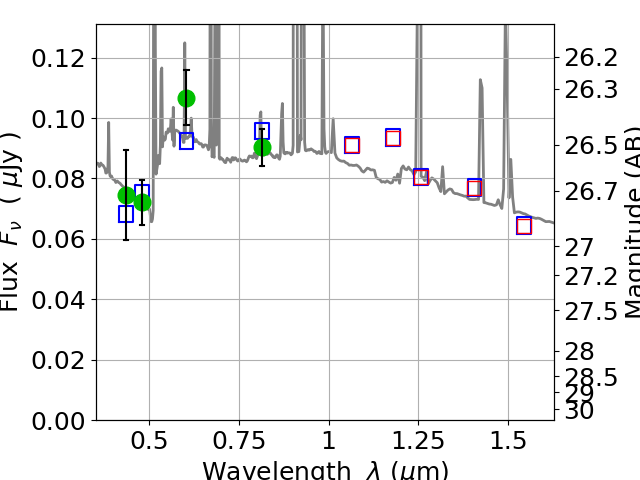 Best viewed in a wide browser window (1200 pixels or more). Download SED & P(z) plots to view larger versions.