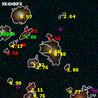 Object #5810 x,y = (3346, 1540) RA, Dec = (01:37:21.696, -8:28:19.20) = (24.34040, -8.47200) BPZ = 0.662 [0.535--0.775] type = 8.40 (SB1_B10 - SB2_B10) chisq2 = 0.34 ODDS = 0.73 z_cluster = 0.566