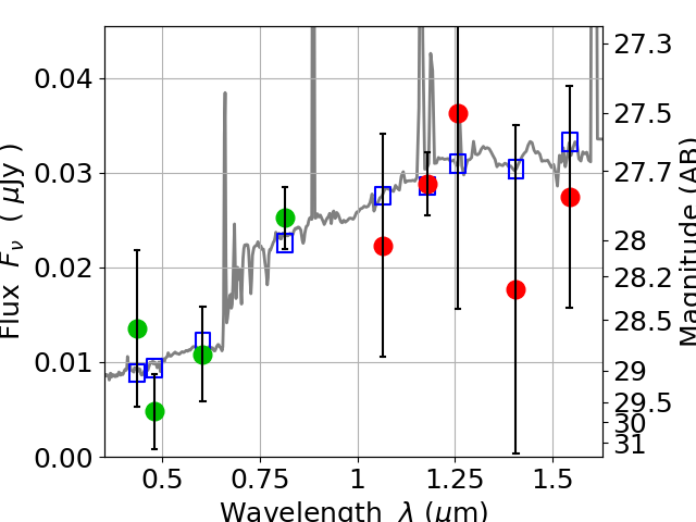 Best viewed in a wide browser window (1200 pixels or more). Download SED & P(z) plots to view larger versions.