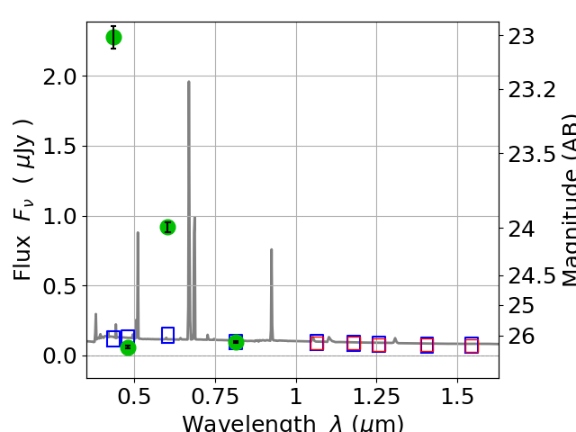 Best viewed in a wide browser window (1200 pixels or more). Download SED & P(z) plots to view larger versions.