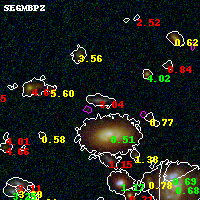 Object #5868 x,y = (2098, 1526) RA, Dec = (01:37:26.736, -8:28:19.92) = (24.36140, -8.47220) BPZ = 3.039 [2.804--3.186] type = 9.70 (SB3_B10 - SB2_B10) chisq2 = 1.35 ODDS = 0.90 z_cluster = 0.566