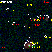 Object #5950 x,y = (2605, 1486) RA, Dec = (01:37:24.696, -8:28:22.44) = (24.35290, -8.47290) BPZ = 0.815 [0.117--1.251] type = 9.50 (SB3_B10 - SB2_B10) chisq2 = 0.56 ODDS = 0.22 z_cluster = 0.566