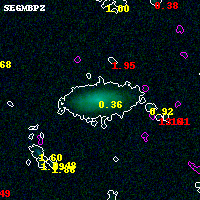 Object #5975 x,y = (1386, 1456) RA, Dec = (01:37:29.616, -8:28:24.24) = (24.37340, -8.47340) BPZ = 0.359 [0.223--0.410] type = 7.20 (Scd_B10 - SB1_B10) chisq2 = 0.02 ODDS = 0.84 z_cluster = 0.566