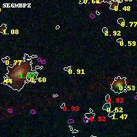 Object #6025 x,y = (3479, 1445) RA, Dec = (01:37:21.168, -8:28:24.96) = (24.33820, -8.47360) BPZ = 0.907 [0.222--3.885] type = 9.20 (SB2_B10 - SB3_B10) chisq2 = 0.40 ODDS = 0.23 z_cluster = 0.566
