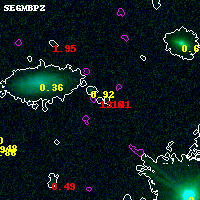 Object #6033 x,y = (1446, 1439) RA, Dec = (01:37:29.376, -8:28:25.32) = (24.37240, -8.47370) BPZ = 1.159 [0.495--2.800] type = 10.60 (SB11_A_0_l - SB3_B10) chisq2 = 2.27 ODDS = 0.10 z_cluster = 0.566