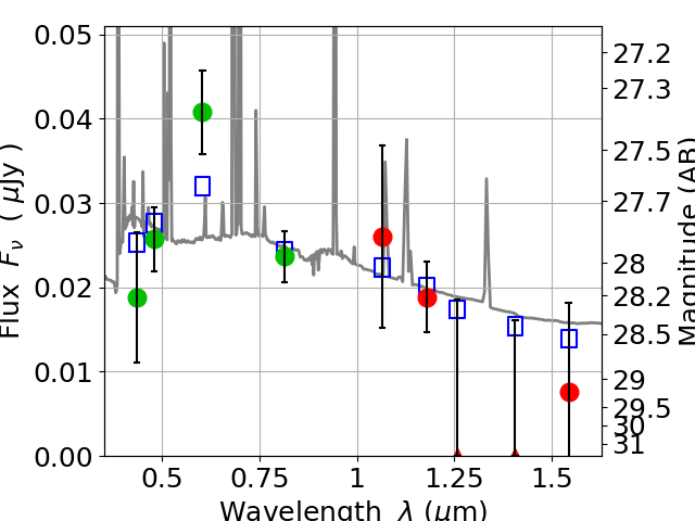 Best viewed in a wide browser window (1200 pixels or more). Download SED & P(z) plots to view larger versions.