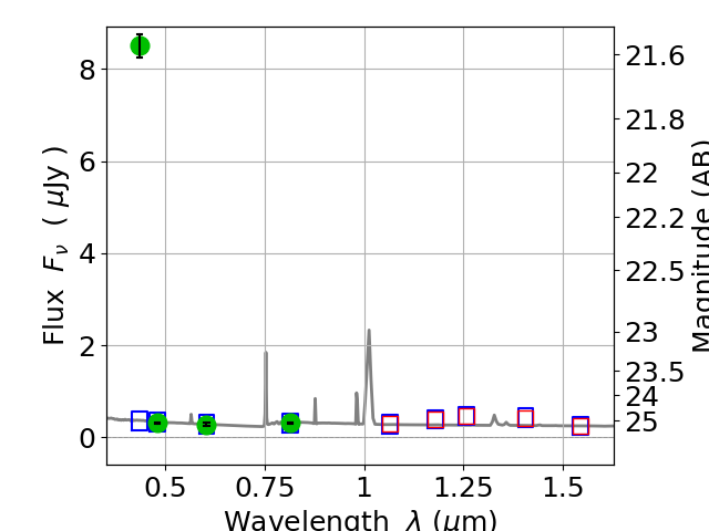 Best viewed in a wide browser window (1200 pixels or more). Download SED & P(z) plots to view larger versions.