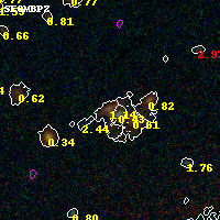 Object #6056 x,y = (3130, 1416) RA, Dec = (01:37:22.560, -8:28:26.76) = (24.34400, -8.47410) BPZ = 1.142 [0.087--1.201] type = 8.70 (SB2_B10 - SB1_B10) chisq2 = 0.58 ODDS = 0.79 z_cluster = 0.566
